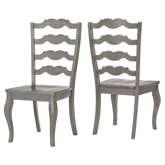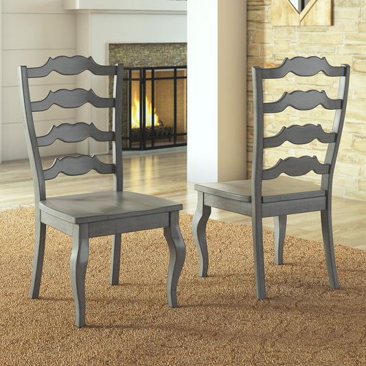 French Ladder Back Wood Dining Chairs (Set of 2) - Antiqua Gray