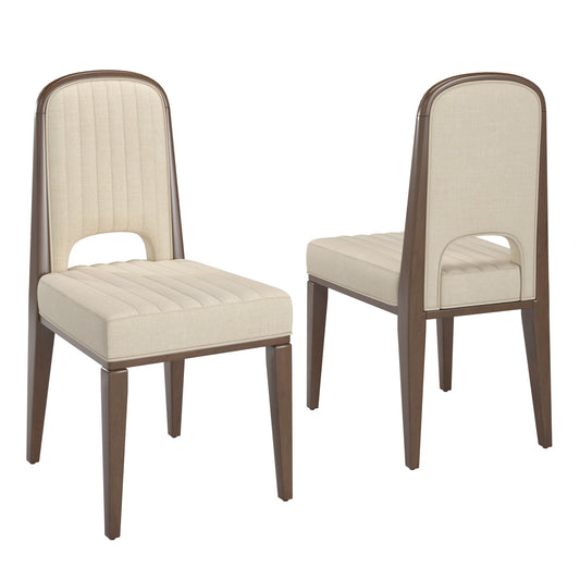 Wood Finish Cream Fabric Channel Stitching Dining Chair (Set of 2) - Walnut