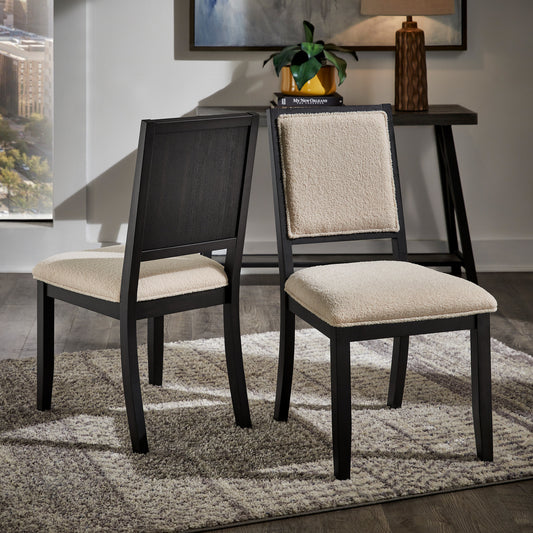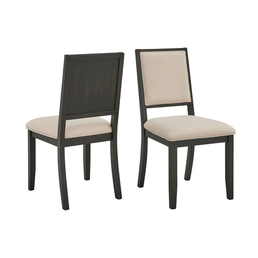 Wood Finish Cream Boucle Fabric Dining Chair (Set of 2) - Black Oak