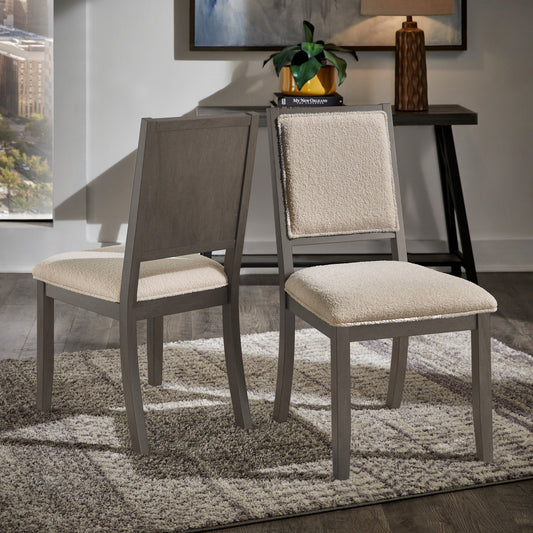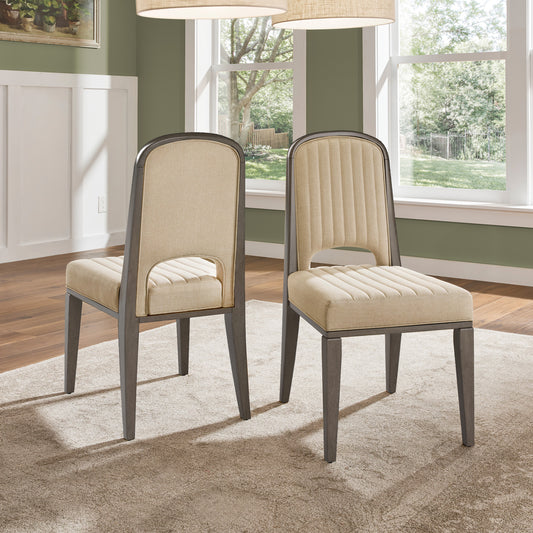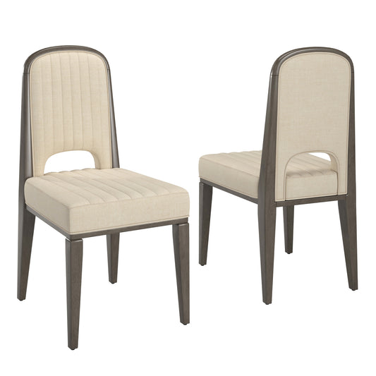 Wood Finish Cream Fabric Channel Stitching Dining Chair (Set of 2) - Gray