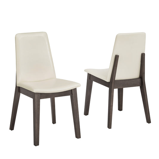 Wood Finish White Vegan Leather Dining Chair (Set of 2) - Gray