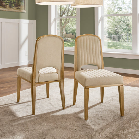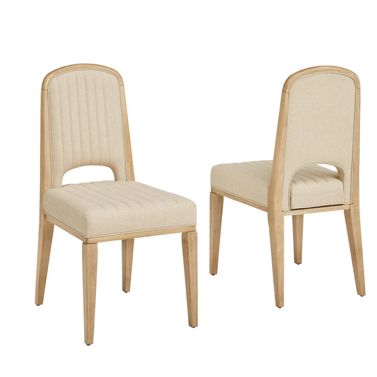 Wood Finish Cream Fabric Channel Stitching Dining Chair (Set of 2) - Oak Wash