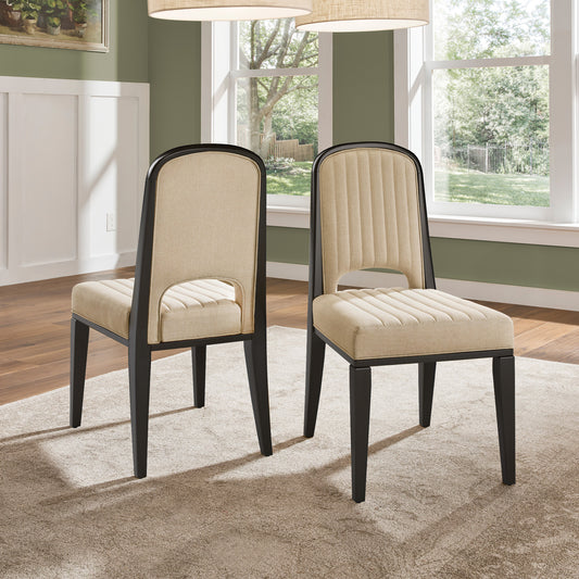Wood Finish Cream Fabric Channel Stitching Dining Chair (Set of 2) - Black Oak