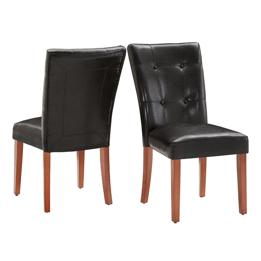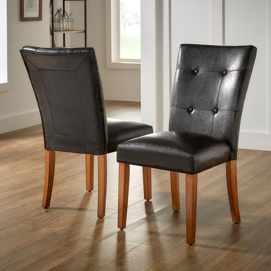 Tufted Faux Leather Dining Chairs (Set of 2) - Cherry Finish, Dark Brown Faux Leather