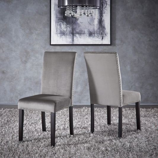 Nailhead Velvet Upholstered Chairs (Set of 2) - Side Dining Chair, Gray