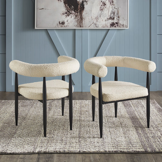 Black Finish Metal Ivory White Boucle Dining Chair (Set of 2)