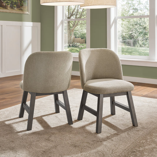Wood Finish Taupe Fabric Curved Low Back Dining Chair (Set of 2) - Oak Wash