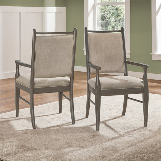 Wood Finish Beige Fabric Arm Chair (Set of 2) - Gray
