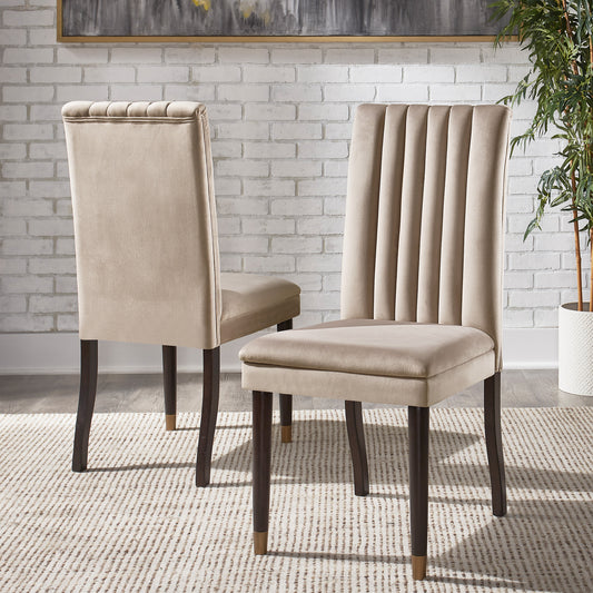 Velvet Channel Back Dining Chairs (Set of 2) - Taupe Velvet