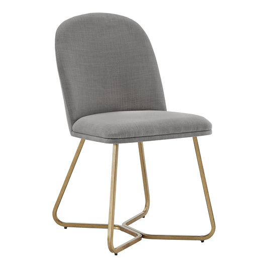 Gold Finish Fabric Dining Chairs (Set of 2) - Light Gray Fabric