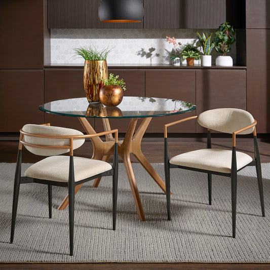Mid-century Modern Dining Chair with Two-tone Copper & Black Finish (Set of 2) - Beige