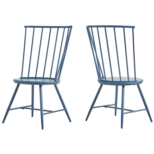 High Back Windsor Classic Dining Chairs (Set of 2) - Blue Steel