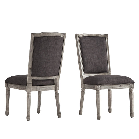 Ornate Linen and Wood Dining Chairs (Set of 2) - Dark Gray Linen, Antique Gray Oak Finish