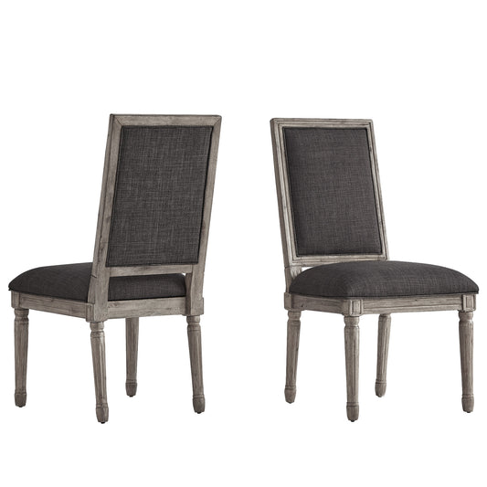 Rectangular Linen and Wood Dining Chairs (Set of 2) - Dark Gray Linen, Antique Gray Oak Finish