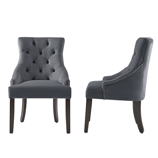 Velvet Button Tufted Wingback Dining Chairs (Set of 2) - Dark Gray Velvet