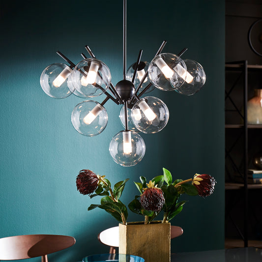 Matte Black Finish Bold 10-Glass Globe Pendant Light