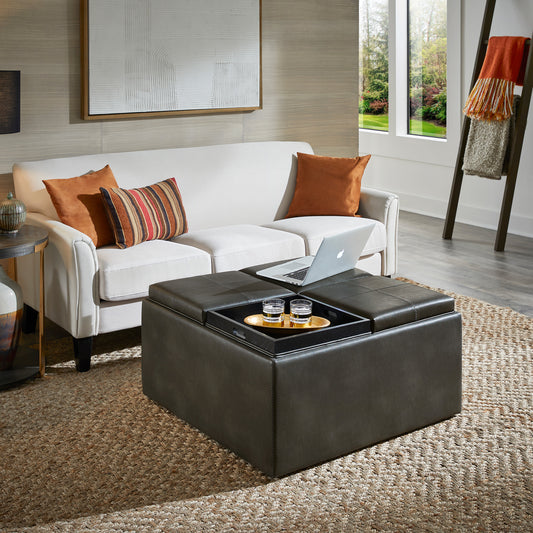 Storage Ottoman - Gray Faux Leather
