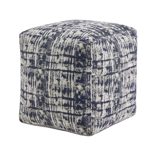 Upholstered Square Pouf Ottoman - Blue & Ivory Abstract Pattern Fabric