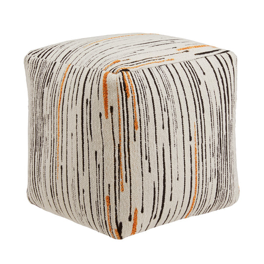 Upholstered Square Pouf Ottoman - Multicolored Line Pattern Fabric