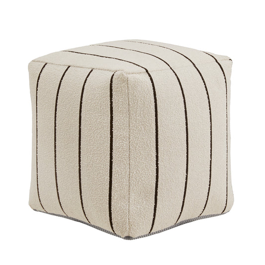 Upholstered Square Pouf Ottoman - Ivory & Black Stripe Pattern Fabric