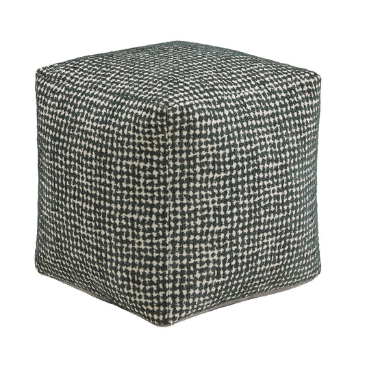 Upholstered Square Pouf Ottoman - Black & White Weaved Pattern Fabric