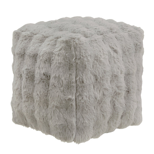Upholstered Square Pouf Ottoman - Gray Square Furry Fabric