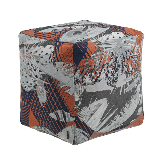 Upholstered Square Pouf Ottoman - Multicolored Abstract Pattern Fabric