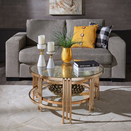 Champagne Gold Finish Textured Glass Table with Shelf - Nesting Coffee Table