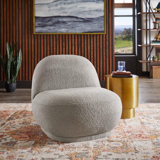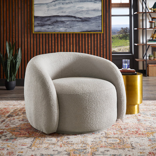 Modern Boucle Lounge Chair with Rounded Design and Lumbar Pillow - Light Gray Chair with Light Gray Pillow