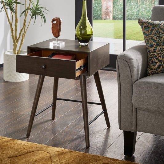 Wood 1-Drawer End Table - Dark Walnut Finish