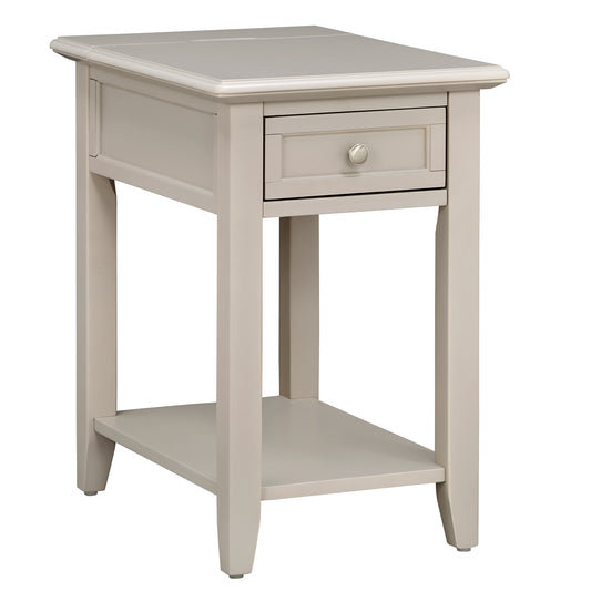 Wood Finish End Table with Built-In Outlets - Antique Gray