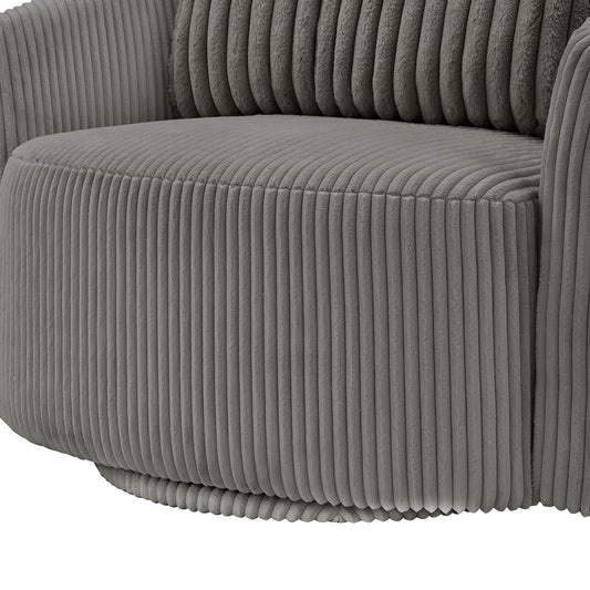 Oversized Wale Corduroy Swivel Accent Chair with Furry Channel Pillow - Gray Chair, Dark Gray Pillow