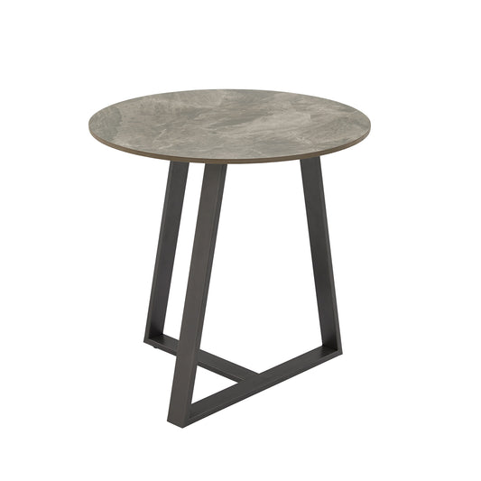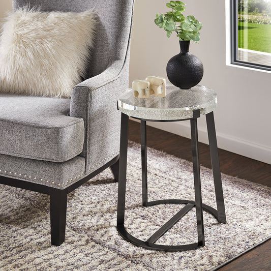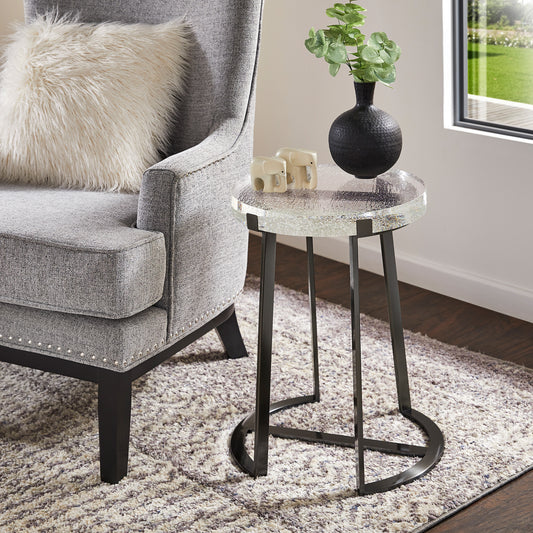 Stainless Steel Cast Glass Top Table - Iron Gray Finish, Round End Table