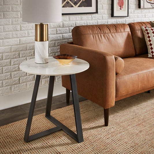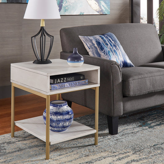 Two-Tone Rectangular End Table with USB Port - White Finish