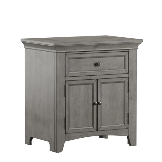 1-Drawer Wood Cupboard Nightstand with Charging Station - Gray