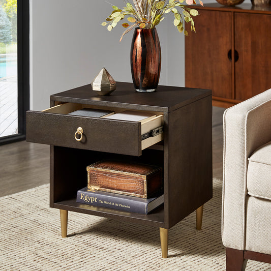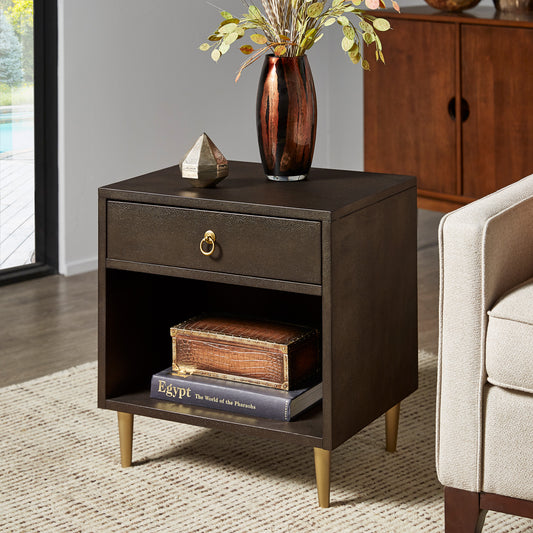 Two-tone Black & Oak finish Nightstand - 1-Drawer with 1 Shelf