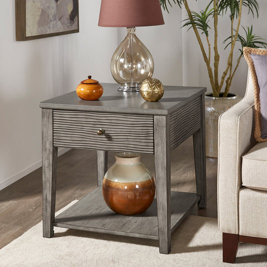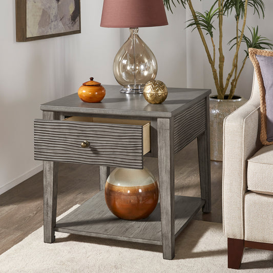 Champagne Gold Finish Textured Glass Table with Shelf - End Table