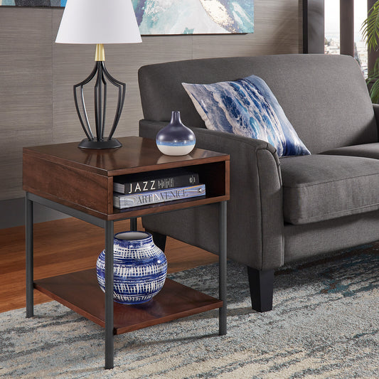 Two-Tone Rectangular End Table with USB Port - Walnut Finish
