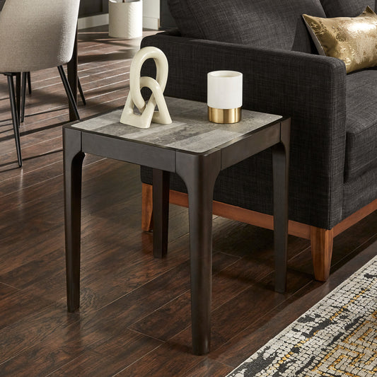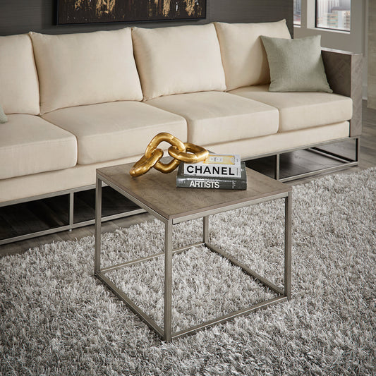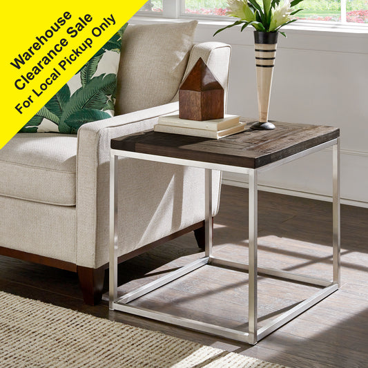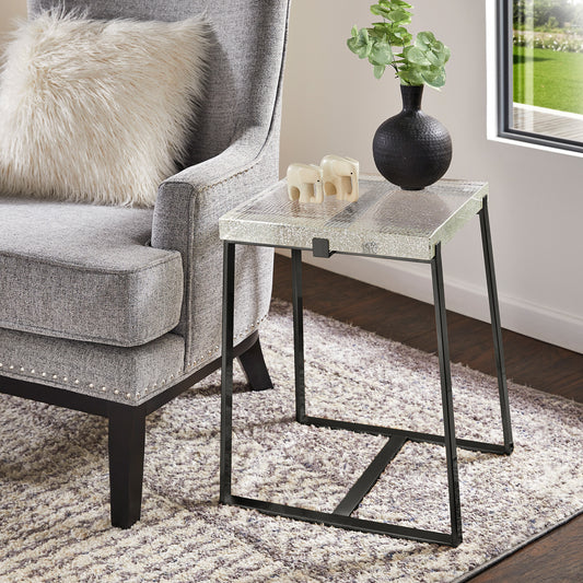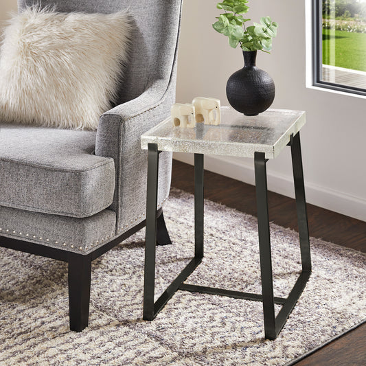 Stainless Steel Cast Glass Top Table - Iron Gray Finish, Square End Table
