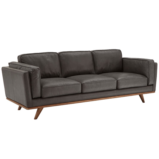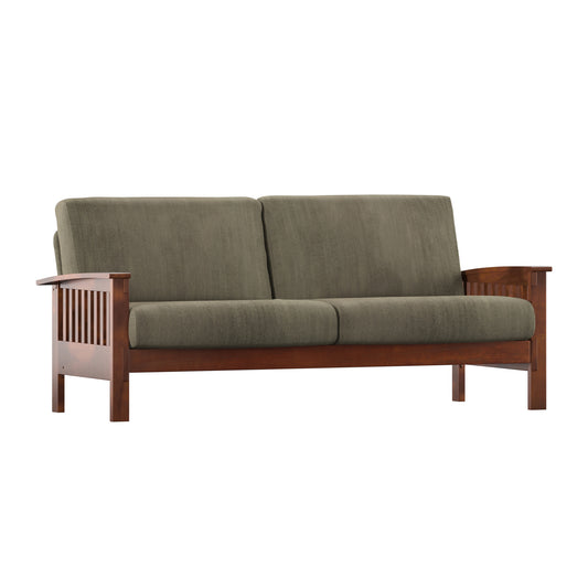 Mission-Style Wood Sofa - Olive Microfiber, Oak Finish