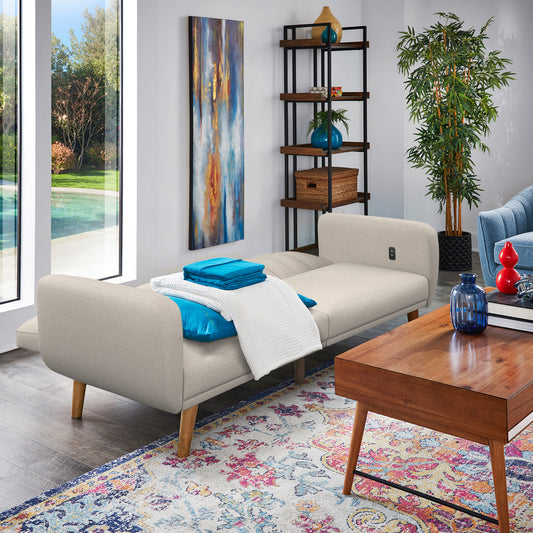 Upholstered Convertible Split-Back Futon Sofa Bed with USB Charging Ports - Light Gray Linan