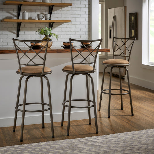 Cross Adjustable Swivel Stools (Set of 3) - Bronze Finish, X-Back