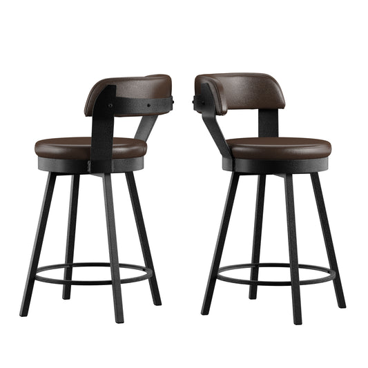 Faux Leather Metal Swivel 25" Counter Height Stools (Set of 2) - Brown