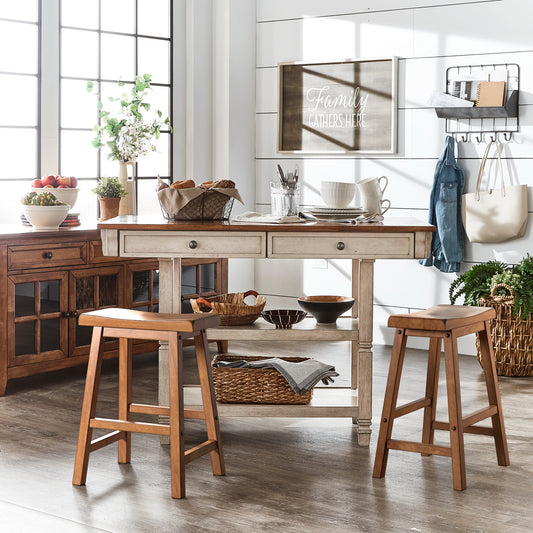 Saddle Seat 29" Bar Height Backless Stools (Set of 2) - Anique White Finish