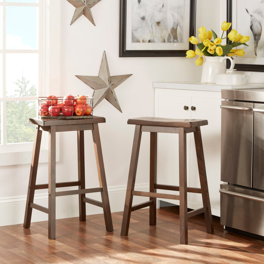 Saddle Seat 29" Bar Height Backless Stools (Set of 2) - Warm Cherry Finish