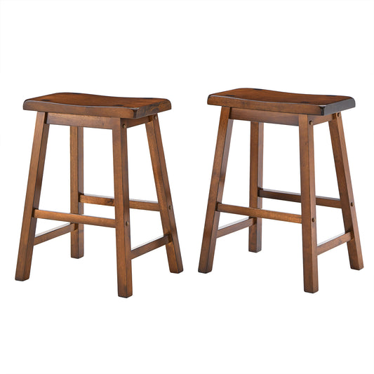 Saddle Seat 24" Counter Height Backless Stools (Set of 2) - Warm Cherry Finish