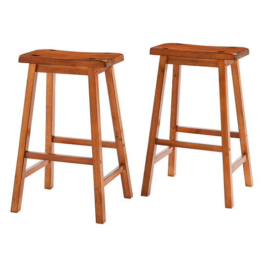 Saddle Seat 24" Counter Height Backless Stools (Set of 2) - Honey Oak Finish