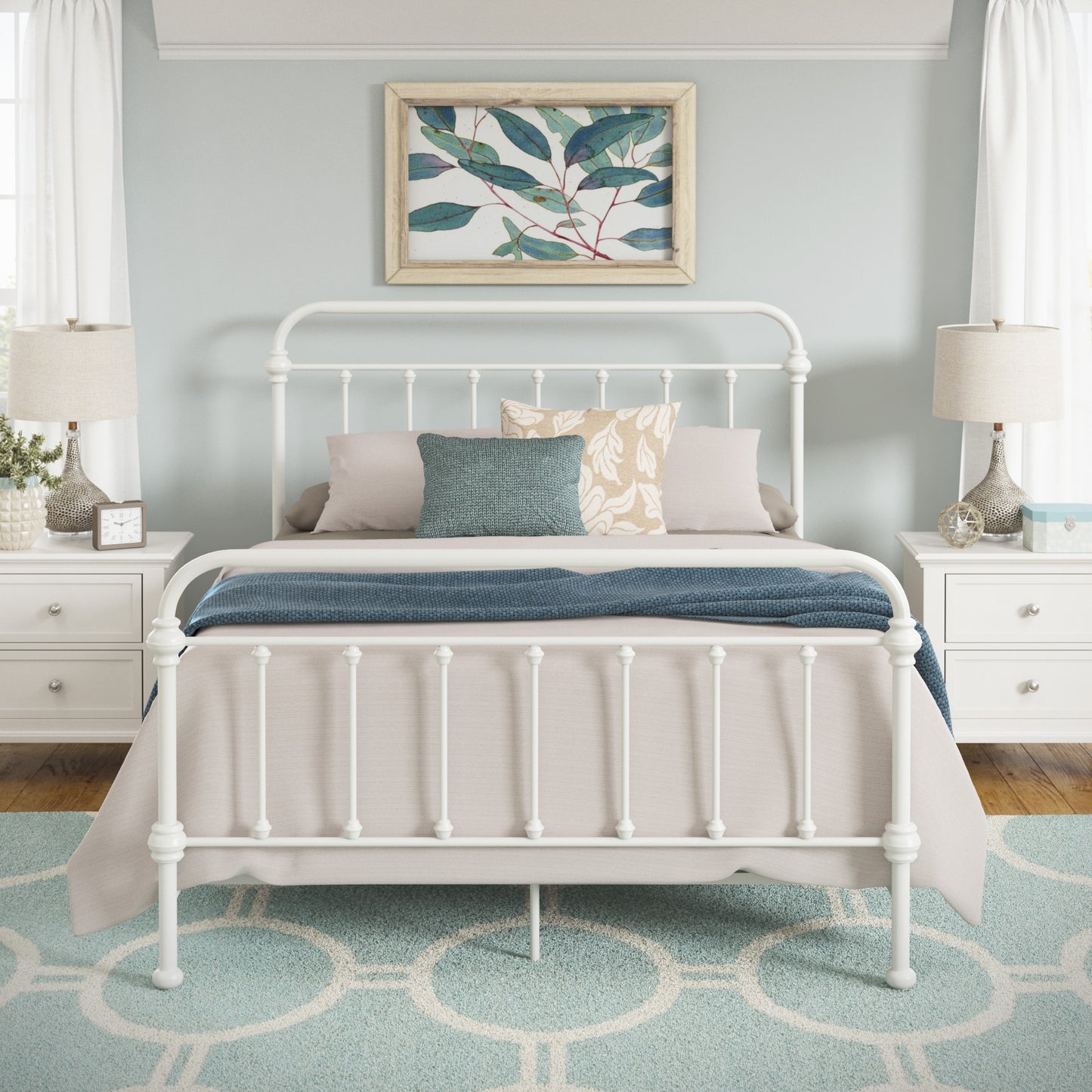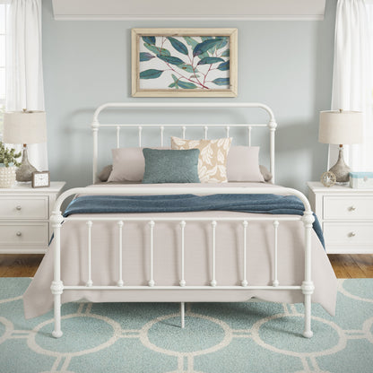 Antique Graceful Victorian Iron Metal Bed - Antique White, Queen (Queen Size)