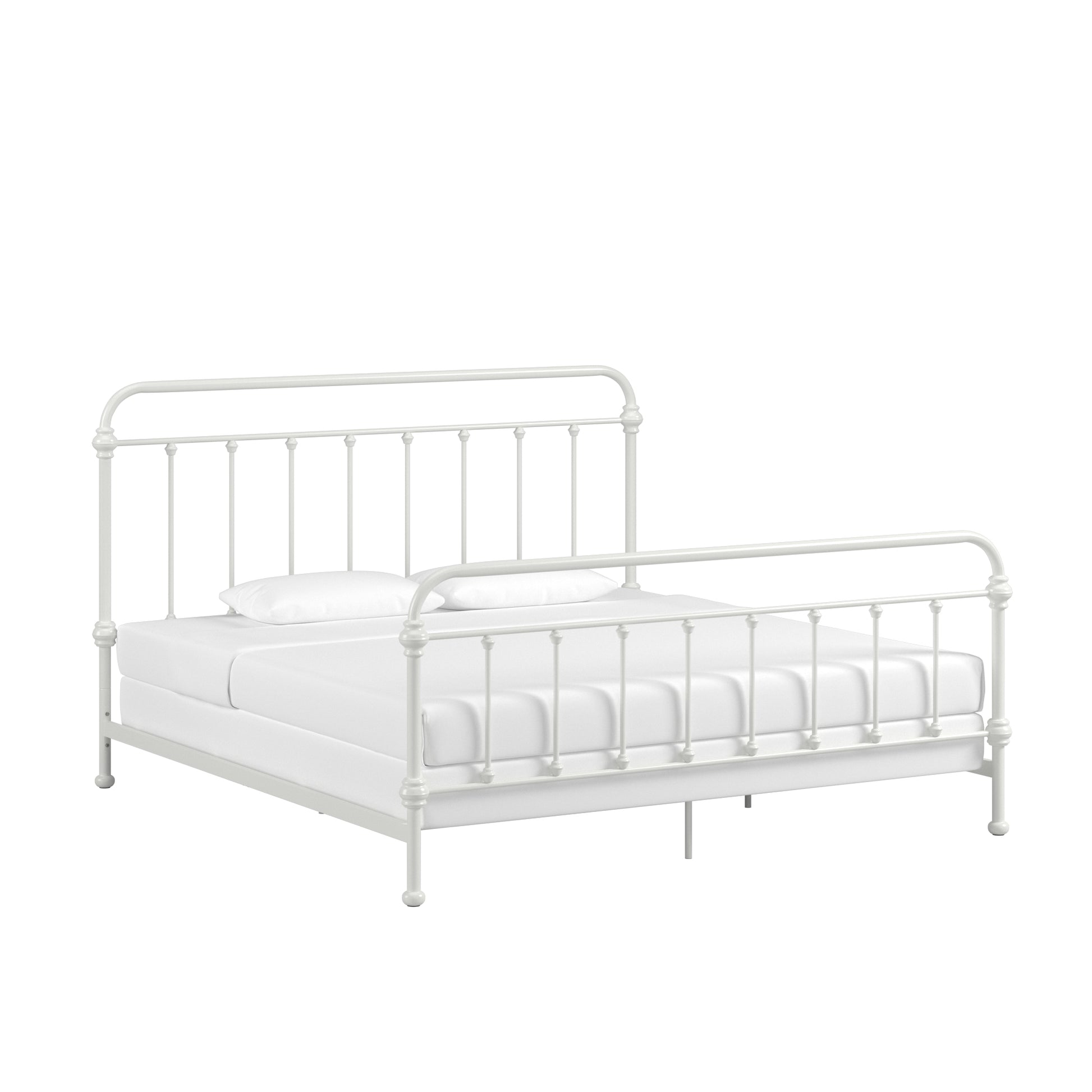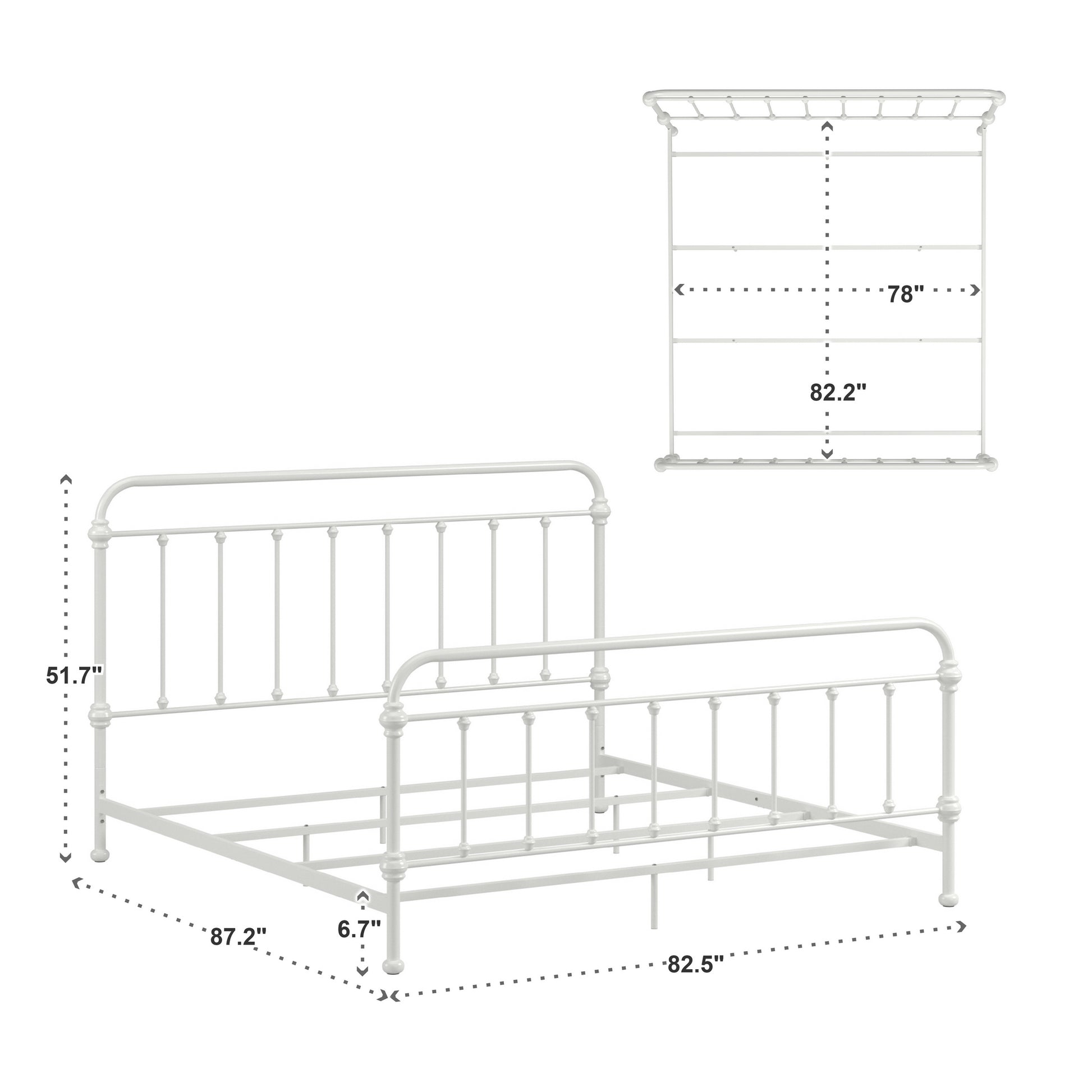 Antique Graceful Victorian Iron Metal Bed - Antique White, King (King Size)