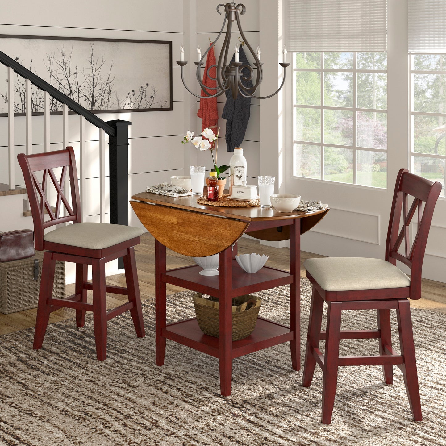Double X-Back Counter Height Wood Swivel Chair - Antique Berry Finish